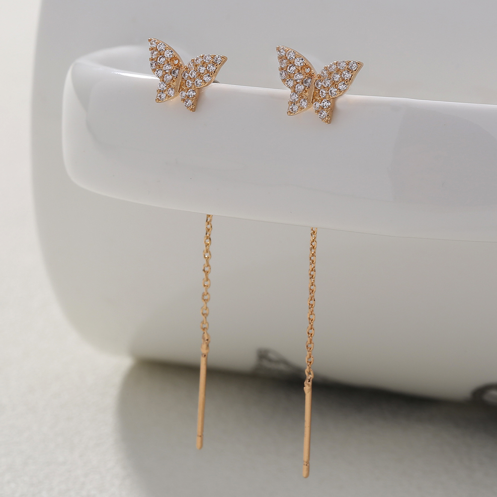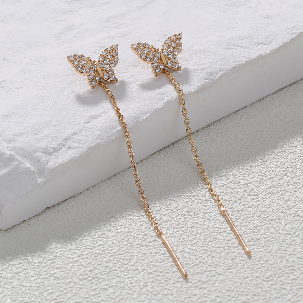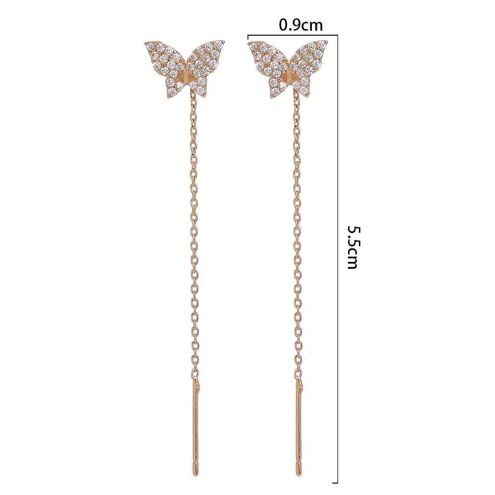 Butterfly Copper Micro Set Zircon Tassel Ear Line Femininity Senior Sense Long Tassel Face Thin Delicate Earrings
