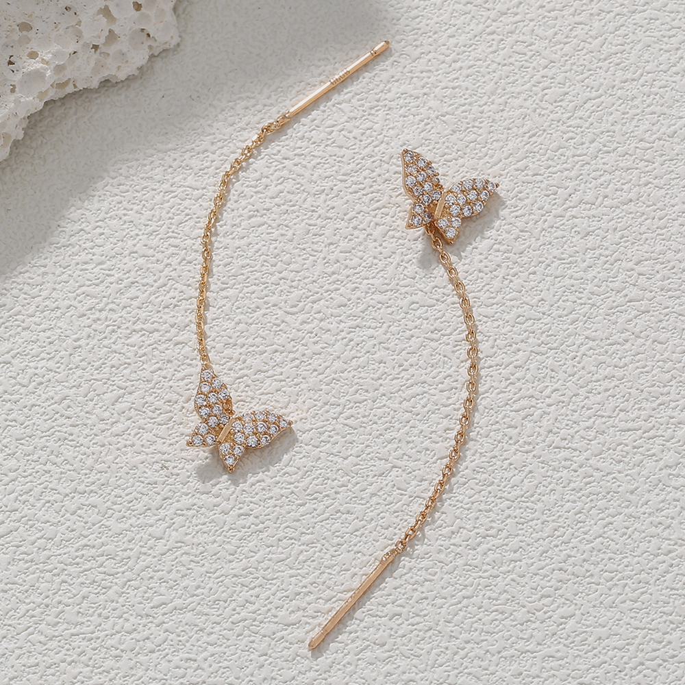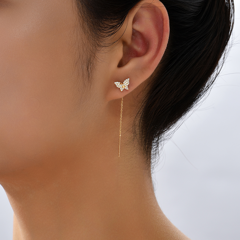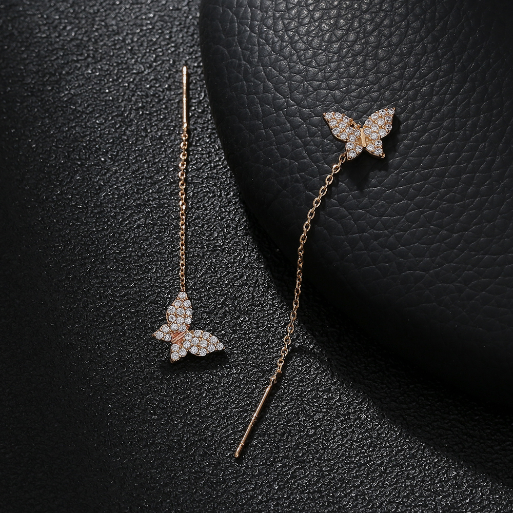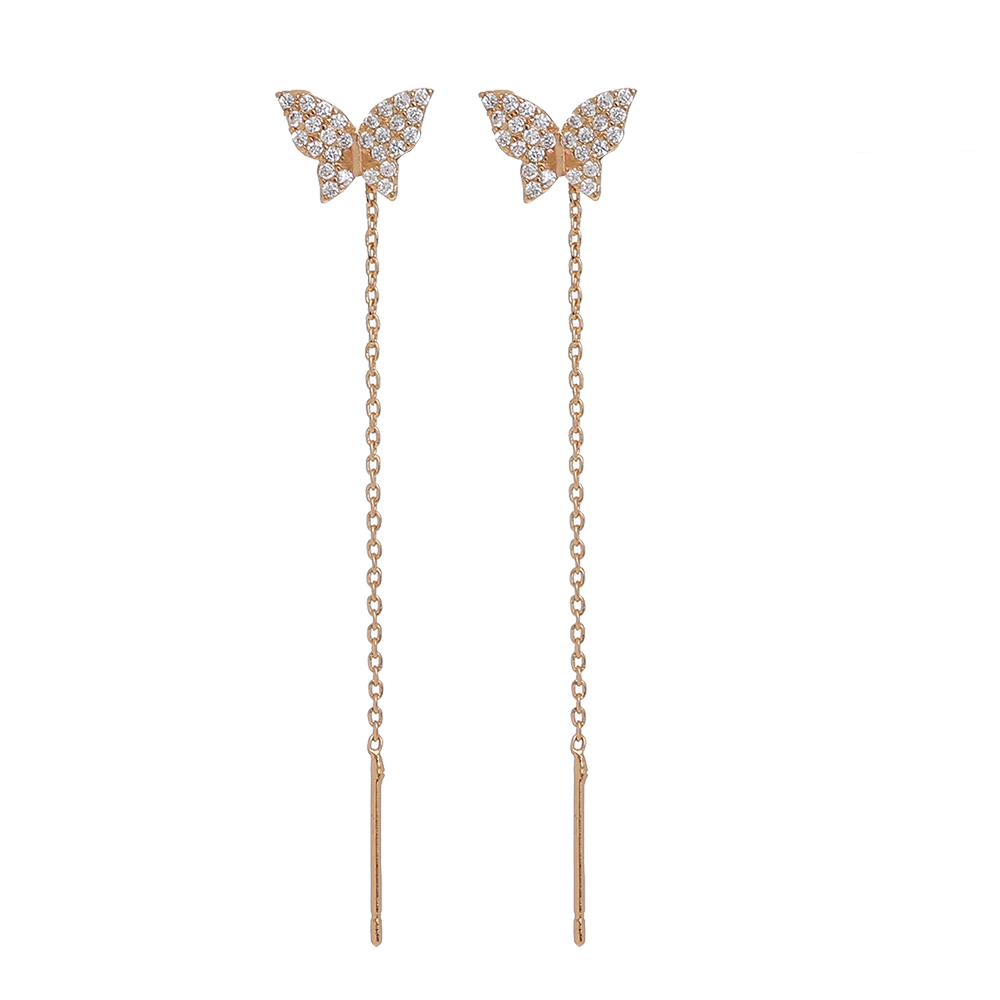Butterfly Copper Micro Set Zircon Tassel Ear Line Femininity Senior Sense Long Tassel Face Thin Delicate Earrings