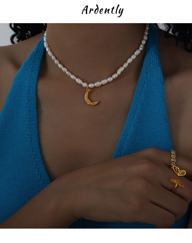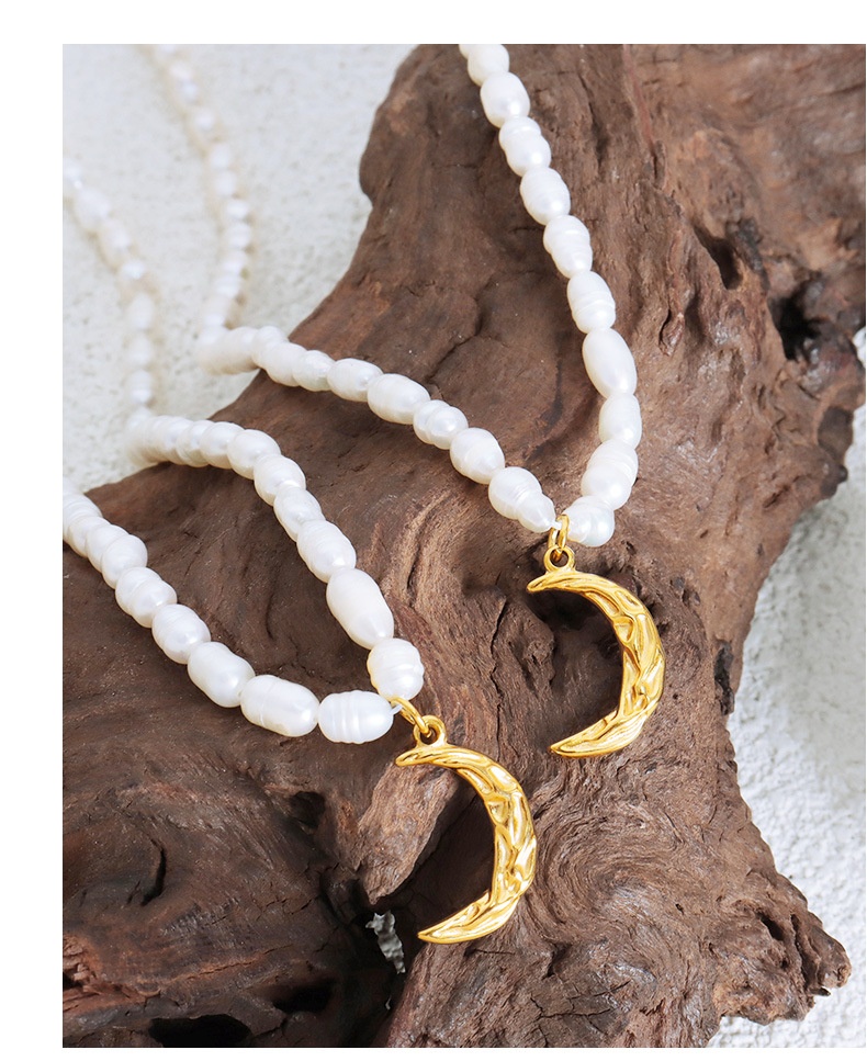 Cold Wind Pleated Texture Moon Freshwater Pearl Necklace
