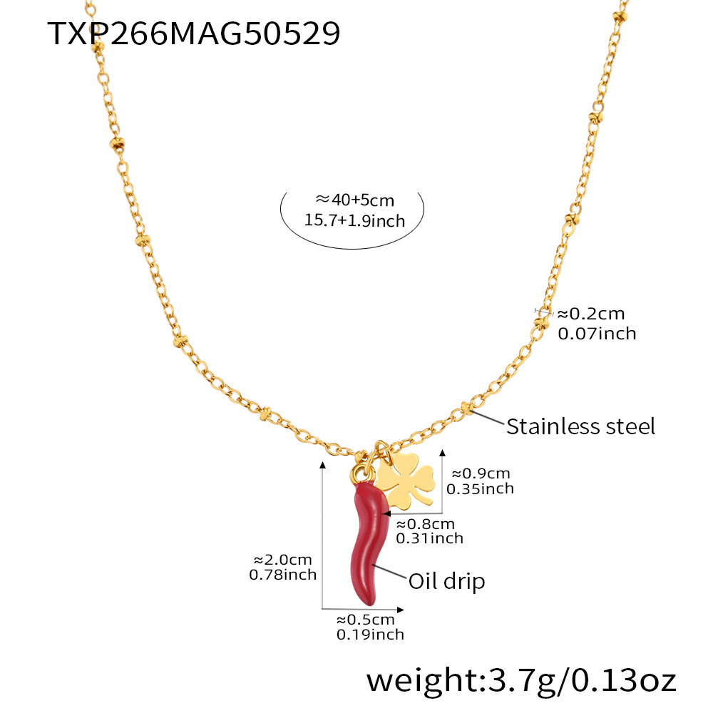 Color: TXP266-gold Red chilli necklace 405cm,TXP266-steel Red chilli necklace 405cm,TXE266-gold Red chilli bracelet 165cm,TXE266-steel Red chilli bracelet 165cm,d240-gold flower pendant 1,D240-steel flower pendant 1,d231-gold Red chilli pendant 1,D231-steel Red chilli pendant 1