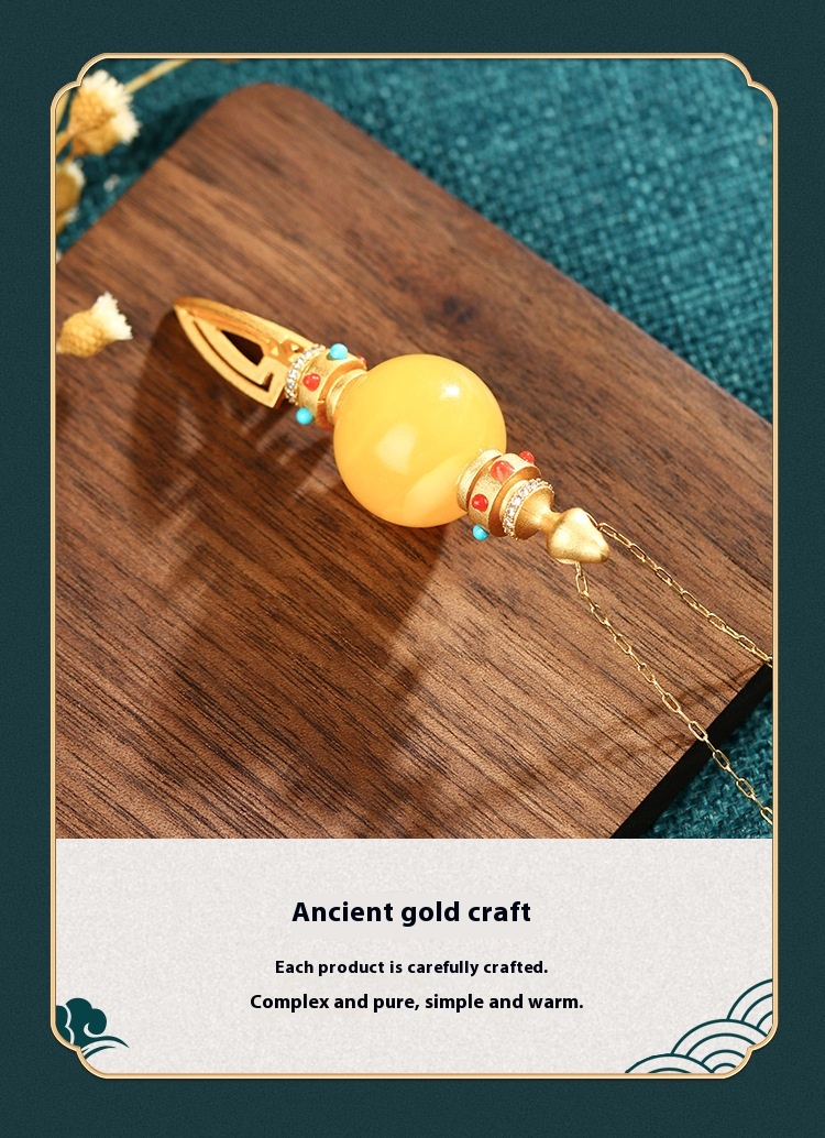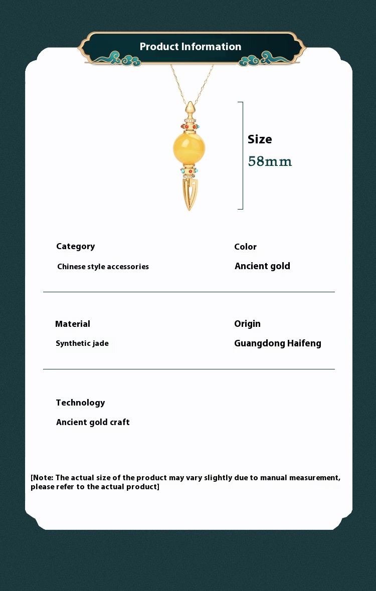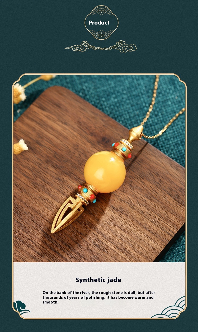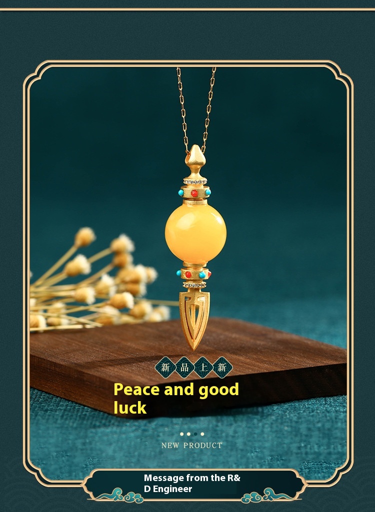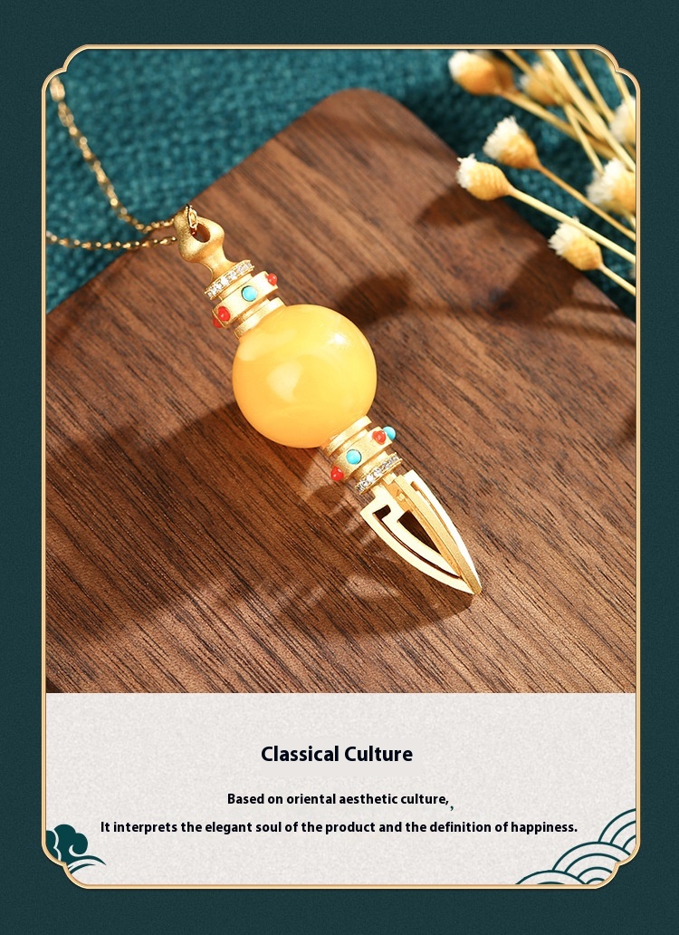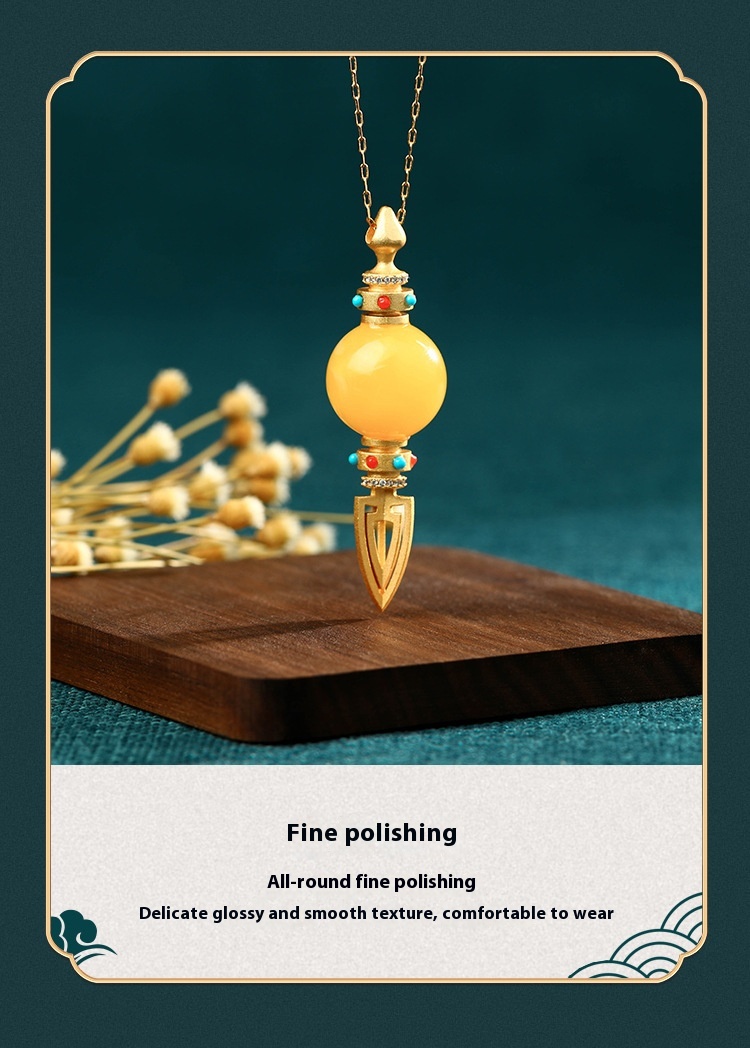 Ethnic Style Ancient Style Gold-plated Inlaid Imitation Old Honey Round Beads Vajra Men’s And Women’s Pendant Necklace