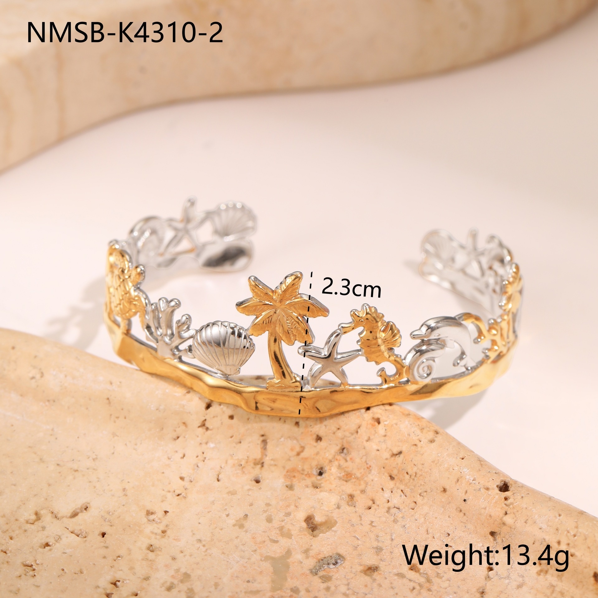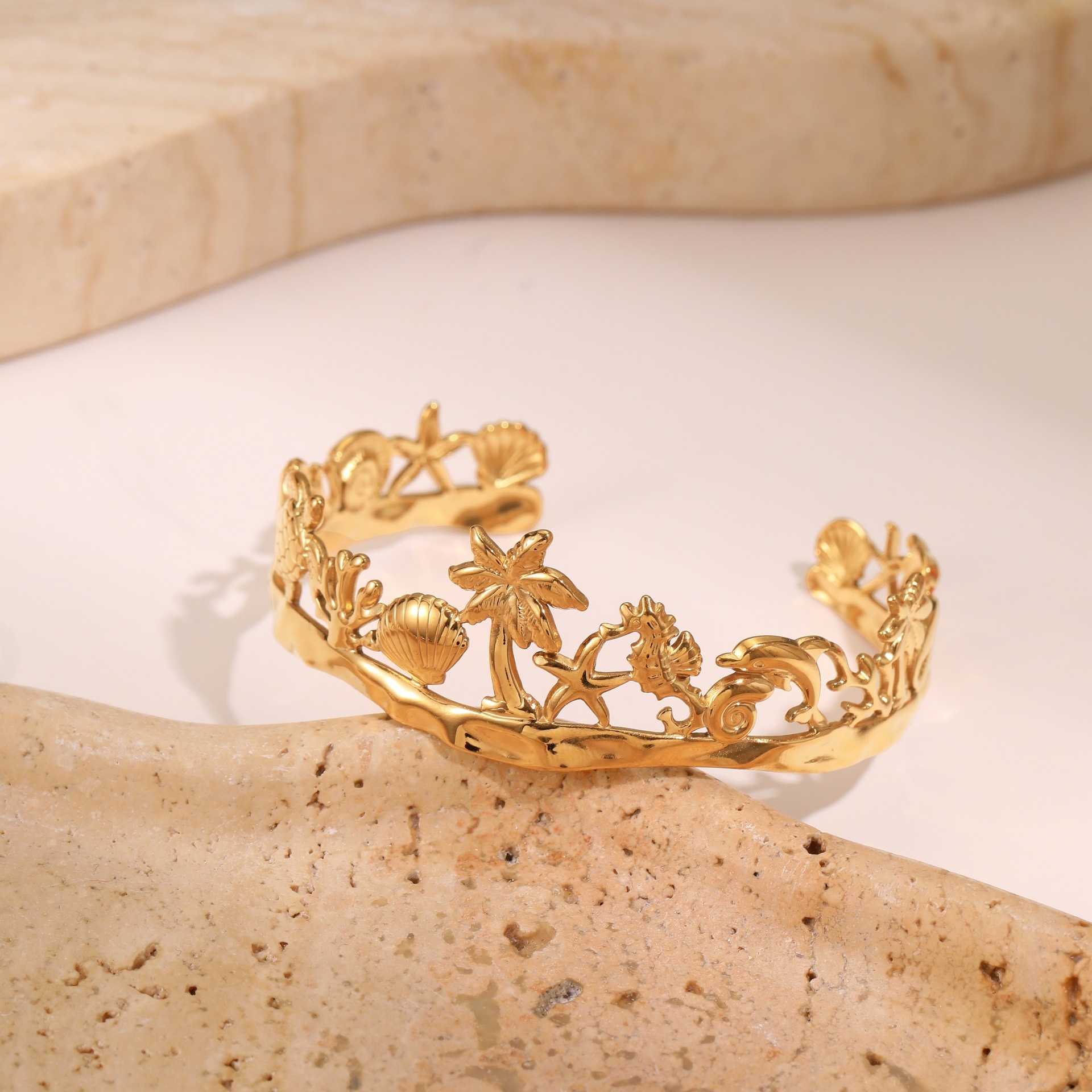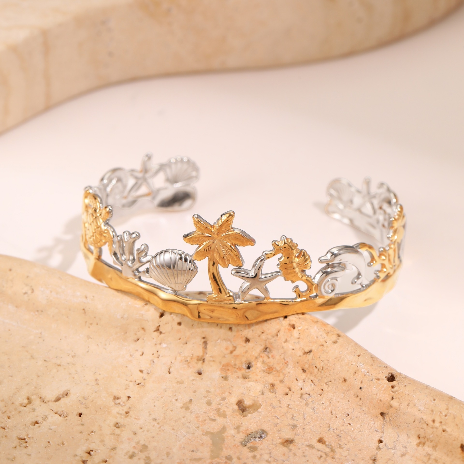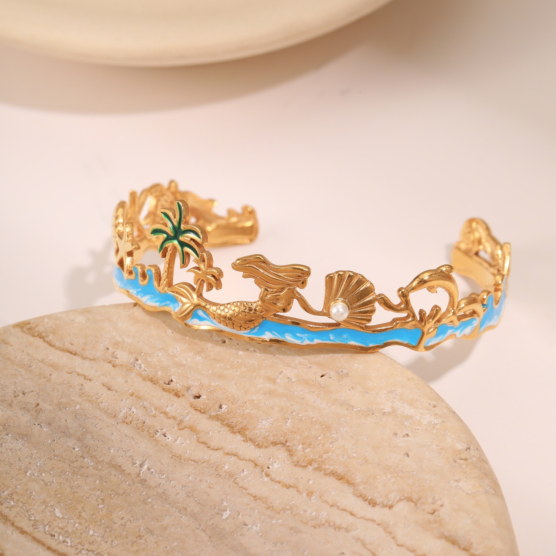 European And American Ocean Style Starfish Coconut Mermaid Stainless Steel Bracelet Non-fading Open Ring