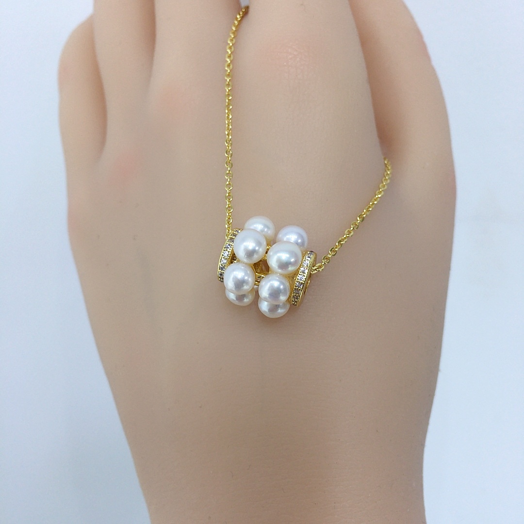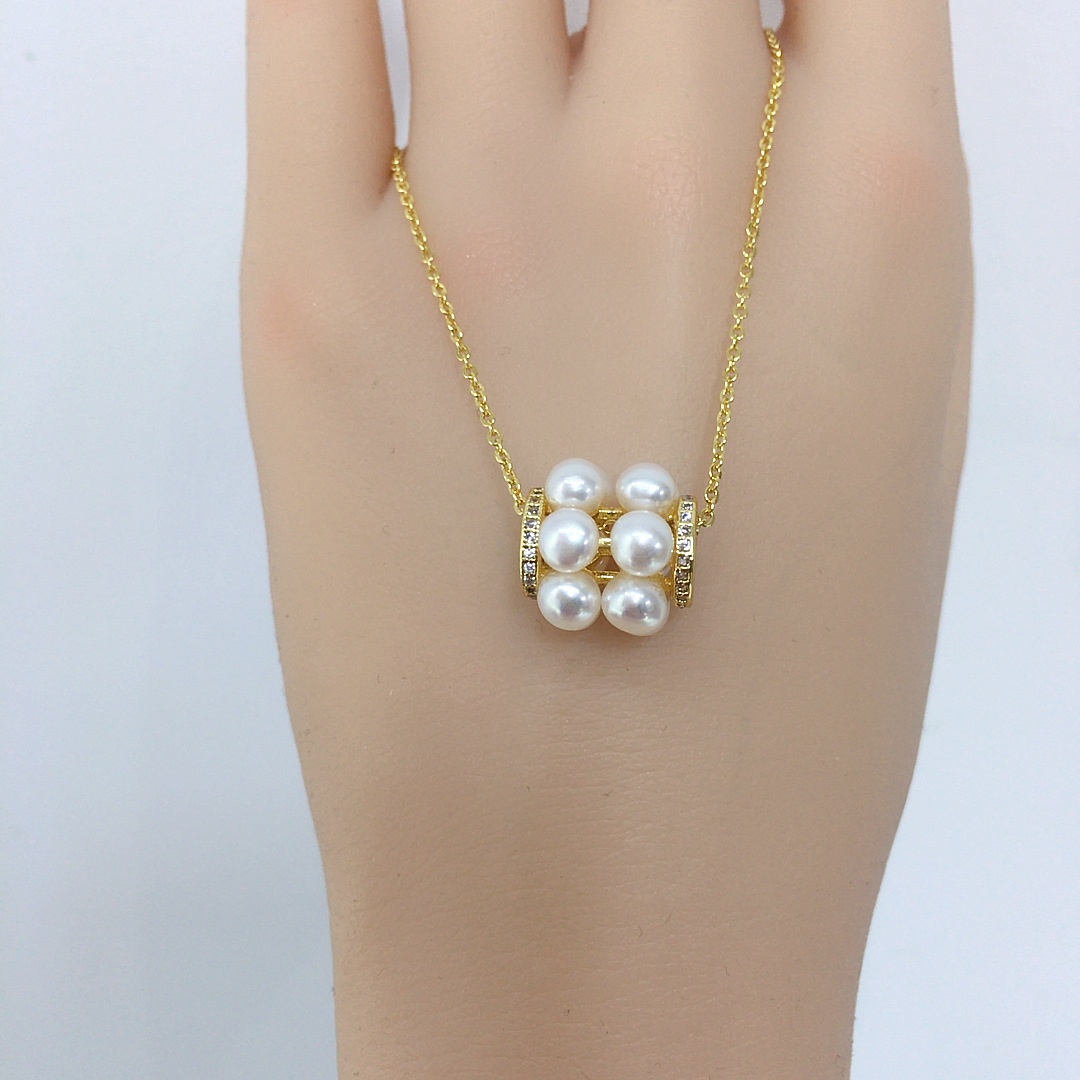 Freshwater Pearl Multiple Beads Barrel Pendant Necklace