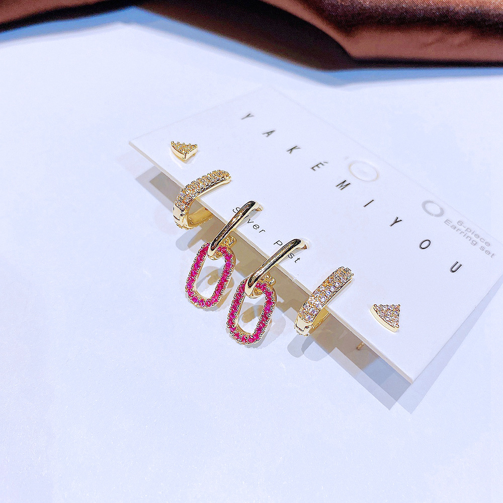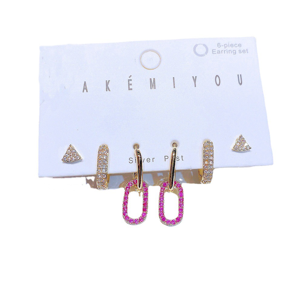 INS Wind Zircon Micro Set Geometric Stud Earrings