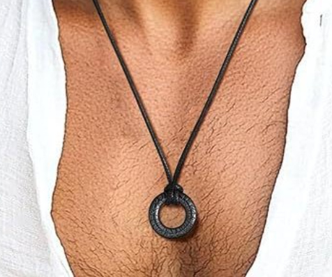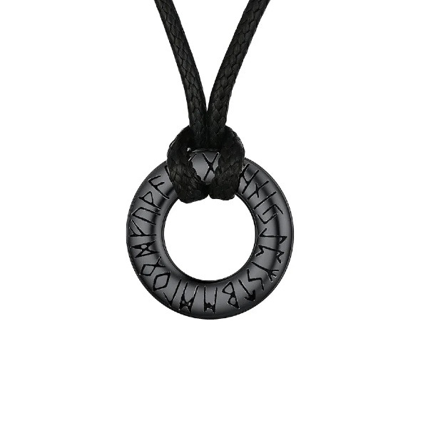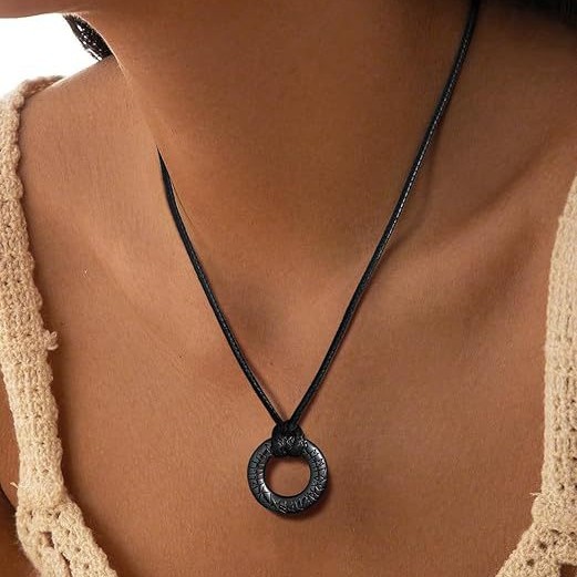 Color: Luen text ring leather string necklace (black),Luen text ring leather string necklace (Silver)