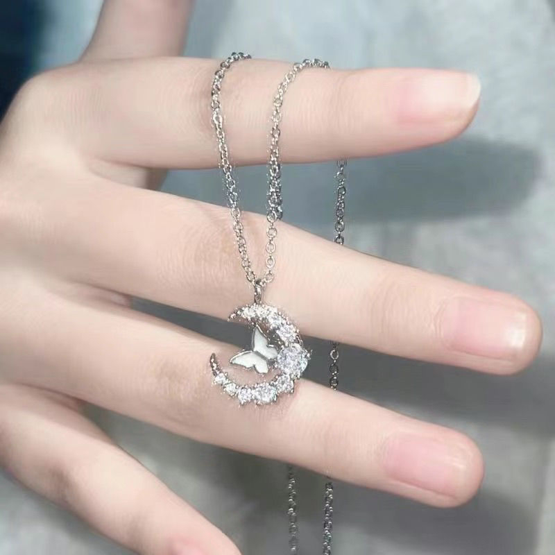 Color: Moon rhinestone butterfly necklace [White Diamond], Moon rhinestone butterfly necklace [Blue Diamond]]
