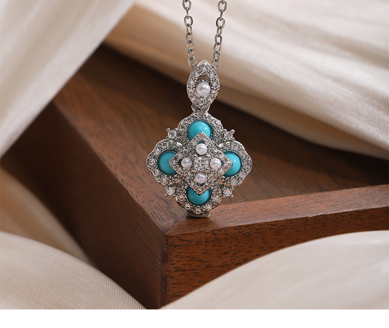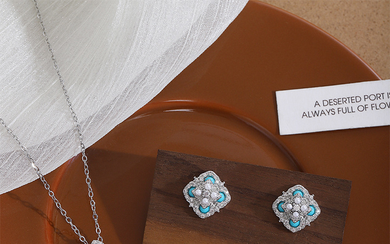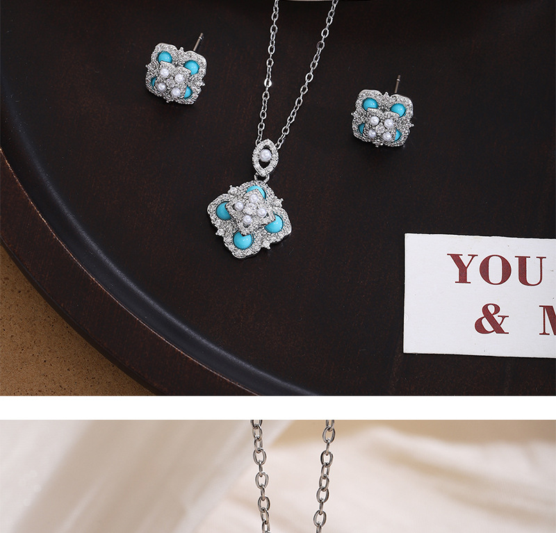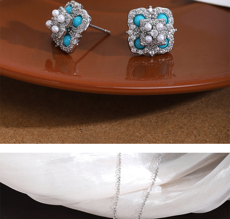 Color: E002135 natural turquoise stud earrings, X001251 natural turquoise necklace