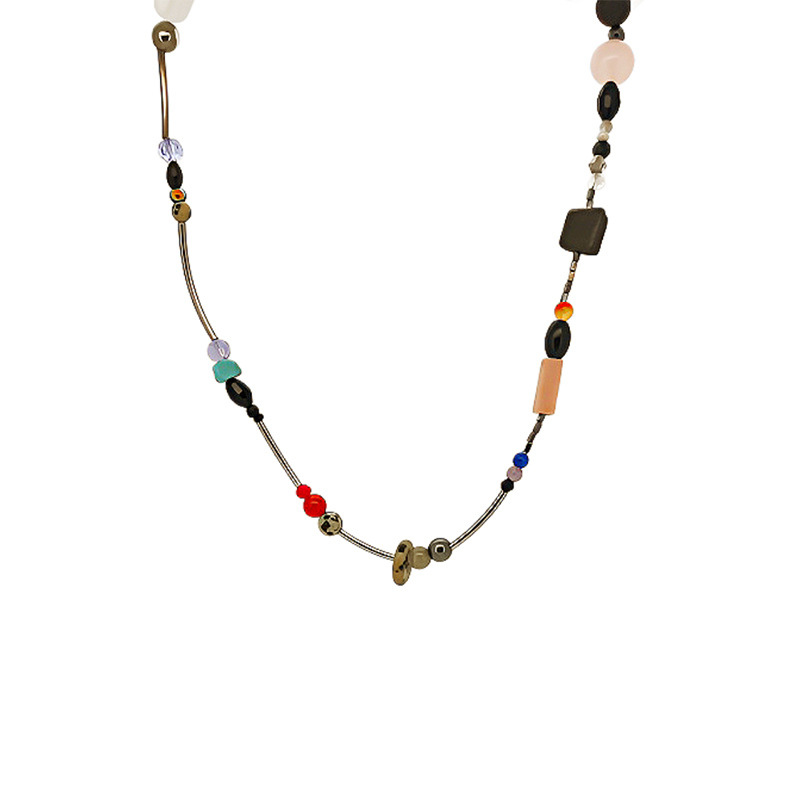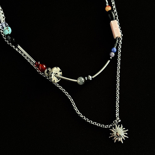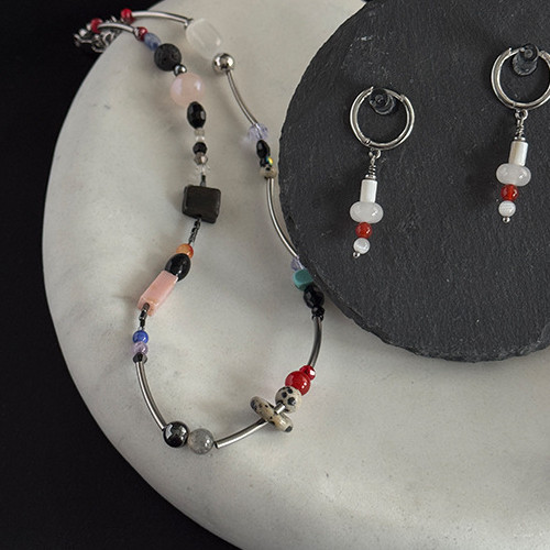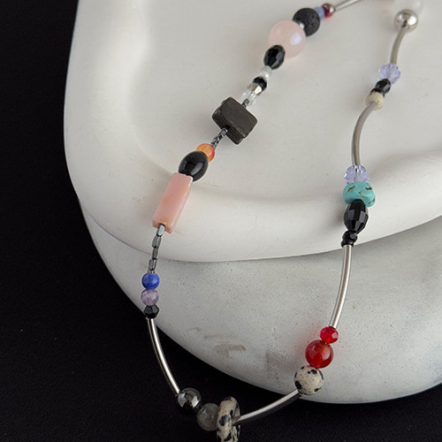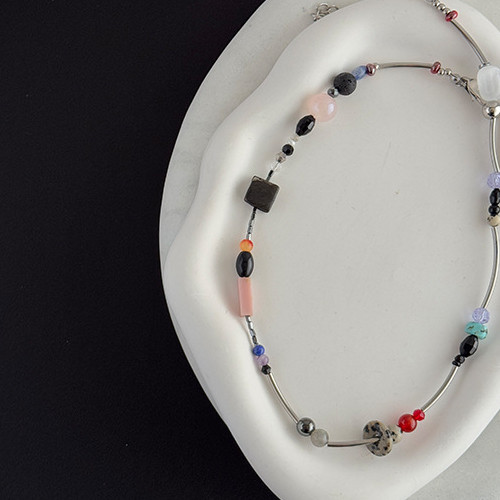 Material: Stainless steel, spotted stone, cat’s eye, pink Australian pearl, crystal, Czech pearl