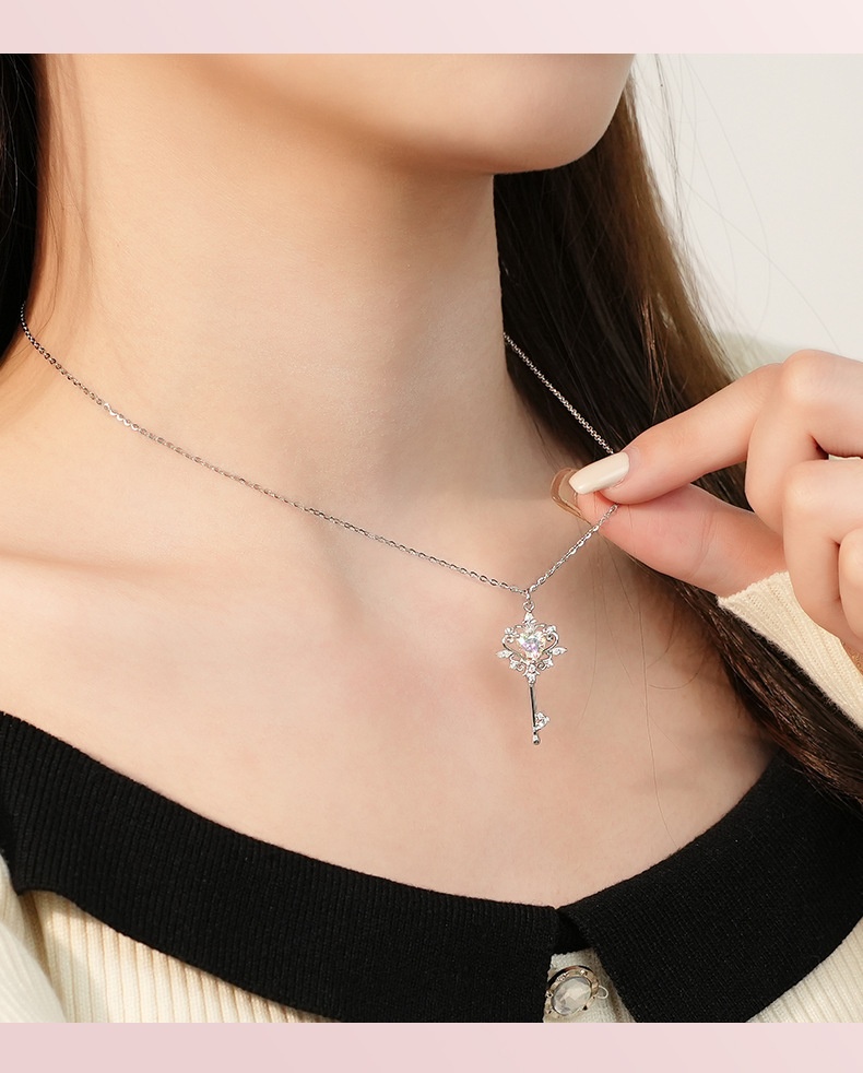 Color: YA0410_color zirconium white gold color necklace, YA0410_pink zirconium white gold color necklace, YA0410_blue zirconium white gold color necklace
