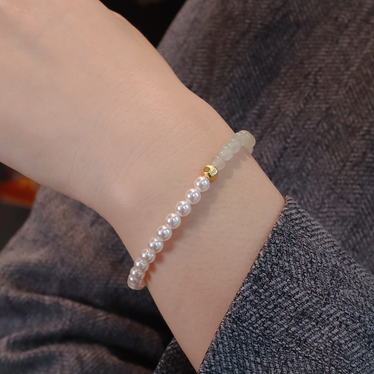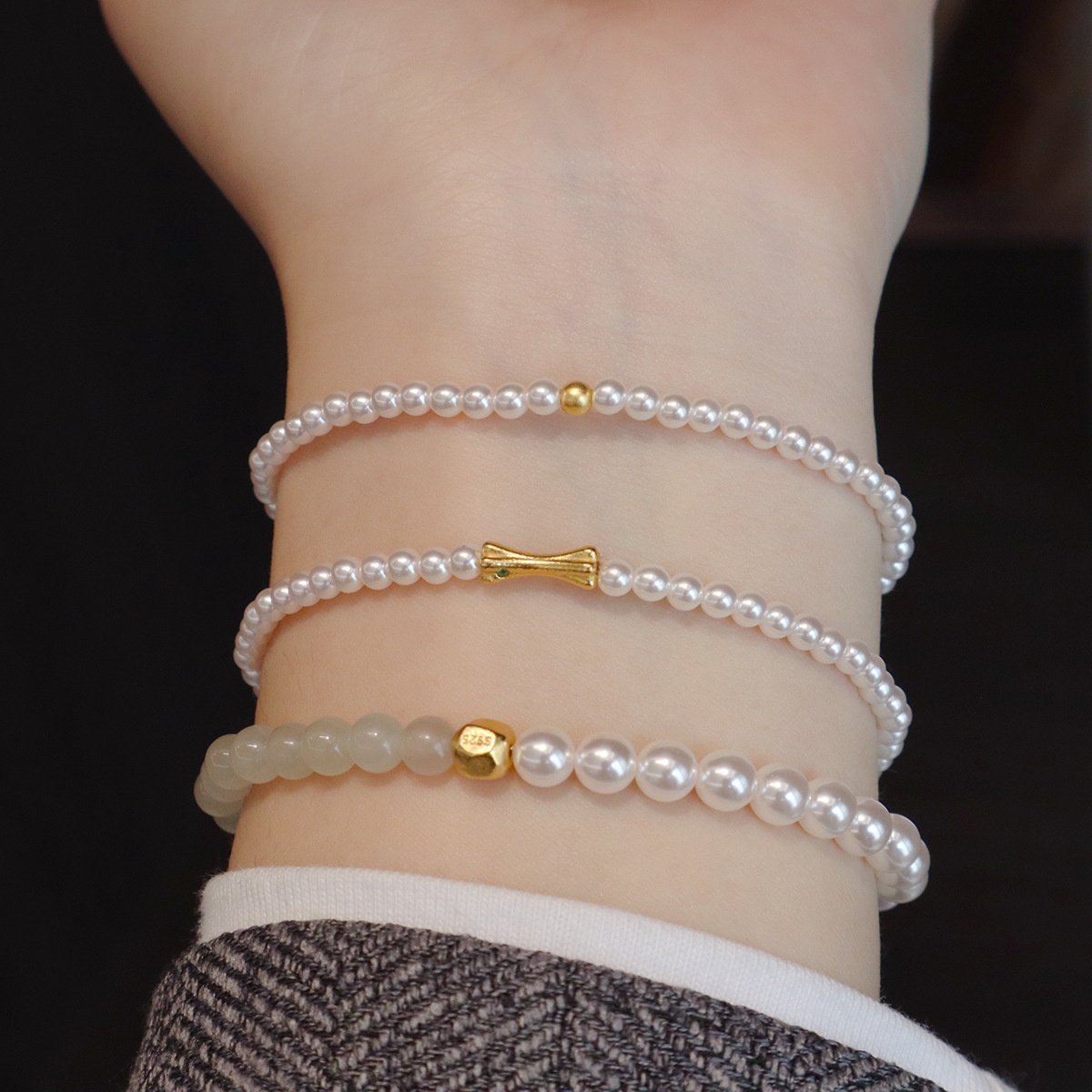 Color: 3MM Shell Pearl S925 silver plated bead bracelet, 3MM Shell Pearl S925 silver high bamboo bracelet, 5MM Shell Pearl natural Hetian jade S925 silver bracelet