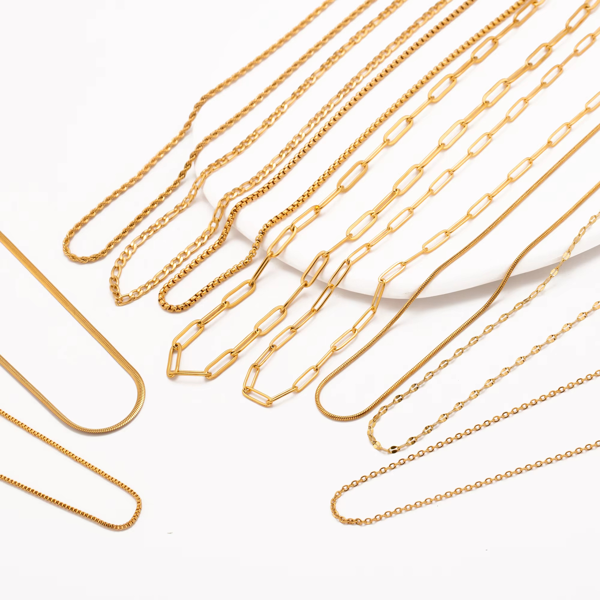 Color | DY6801 O Shaped Silver Chain, DY6802 O Shaped Chain Gold, DY6803 O Shaped Rose Gold, DY6731 Figaro Silver, DY6732 Figaro Gold, DY6741 Water Wave Chain Silver, DY6742 Water Wave Chain Gold, DY6751 Lips Chain Silver, DY6752 Lip Chain Gold, DY6761 Snake Chain Silver, DY6762 Snake Chain Gold, DY6771 Twist Silver, DY6772 Hemp Flowers Chain Gold, DY6781 Return Chain Big Silver, DY6782 Return Chain Daikin, DY6791 Return Silver, DY6792 Return Chain Small Gold, DY6811 Snake Chain Silver, DY6812 Snake Chain Gold, DY6821 Box Chain Silver, DY6822 Box Chain Gold, DY6831 Curb Necklace Silver, DY6832 Curb Necklace Gold, DY6841 Square Pearl Silver, DY6842 Square Pearl Gold |