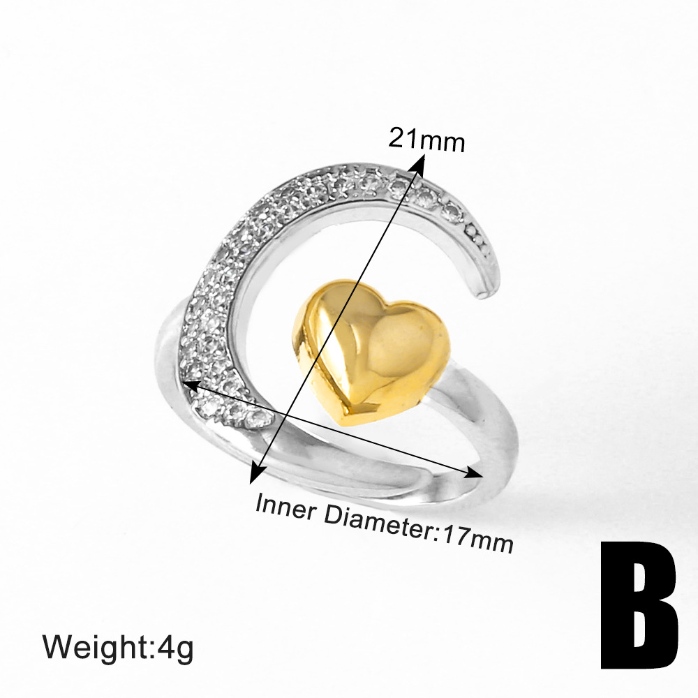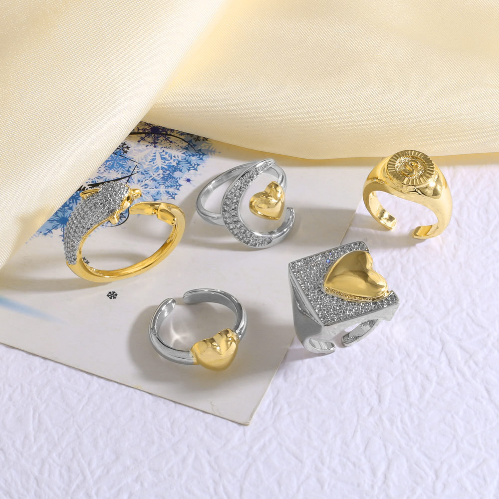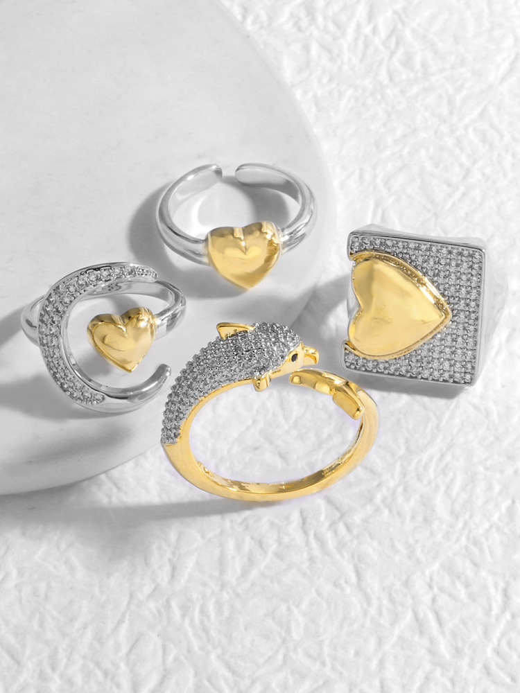 Two-tone Copper Plating 18K Gold Heart-shaped Open Ring