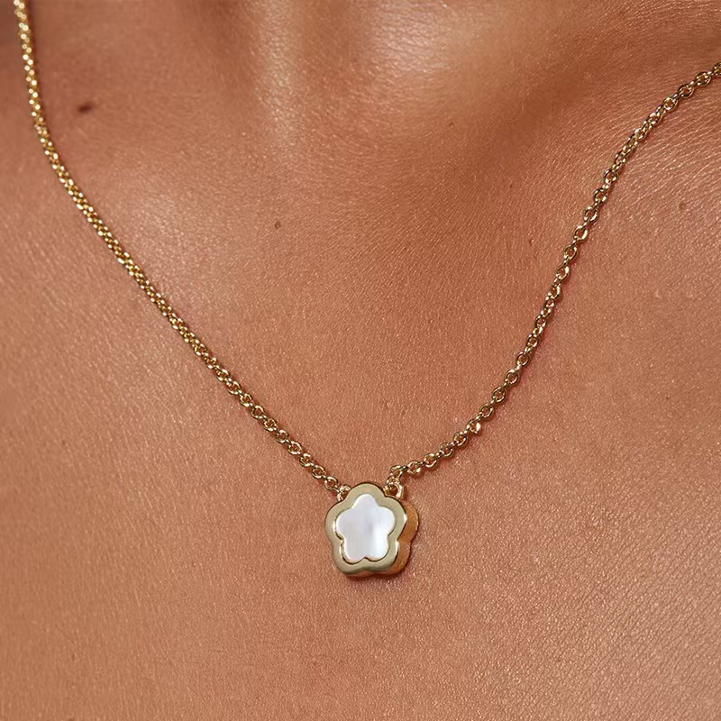 Color: white mother shell flower necklace [silver], white mother shell flower necklace [gold]