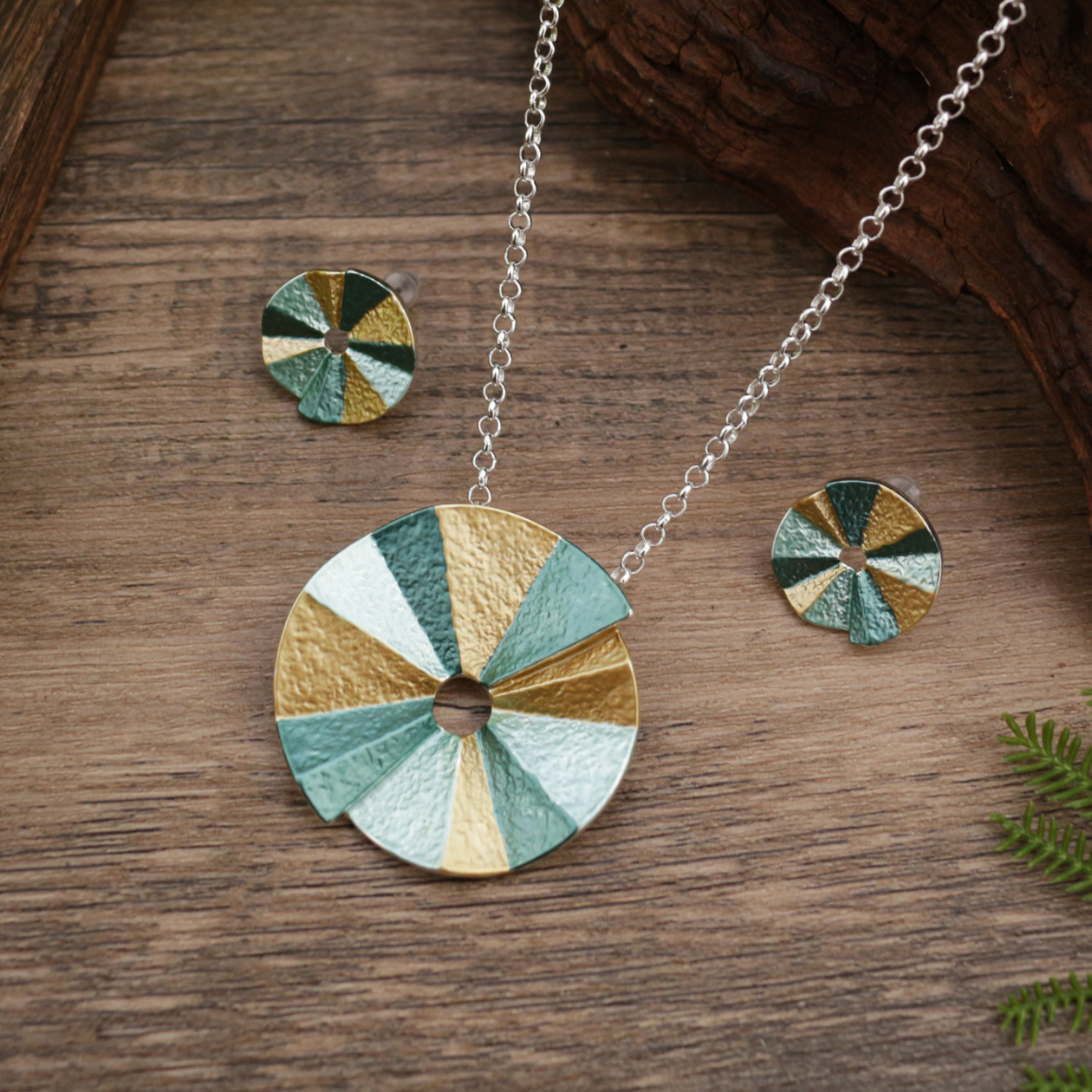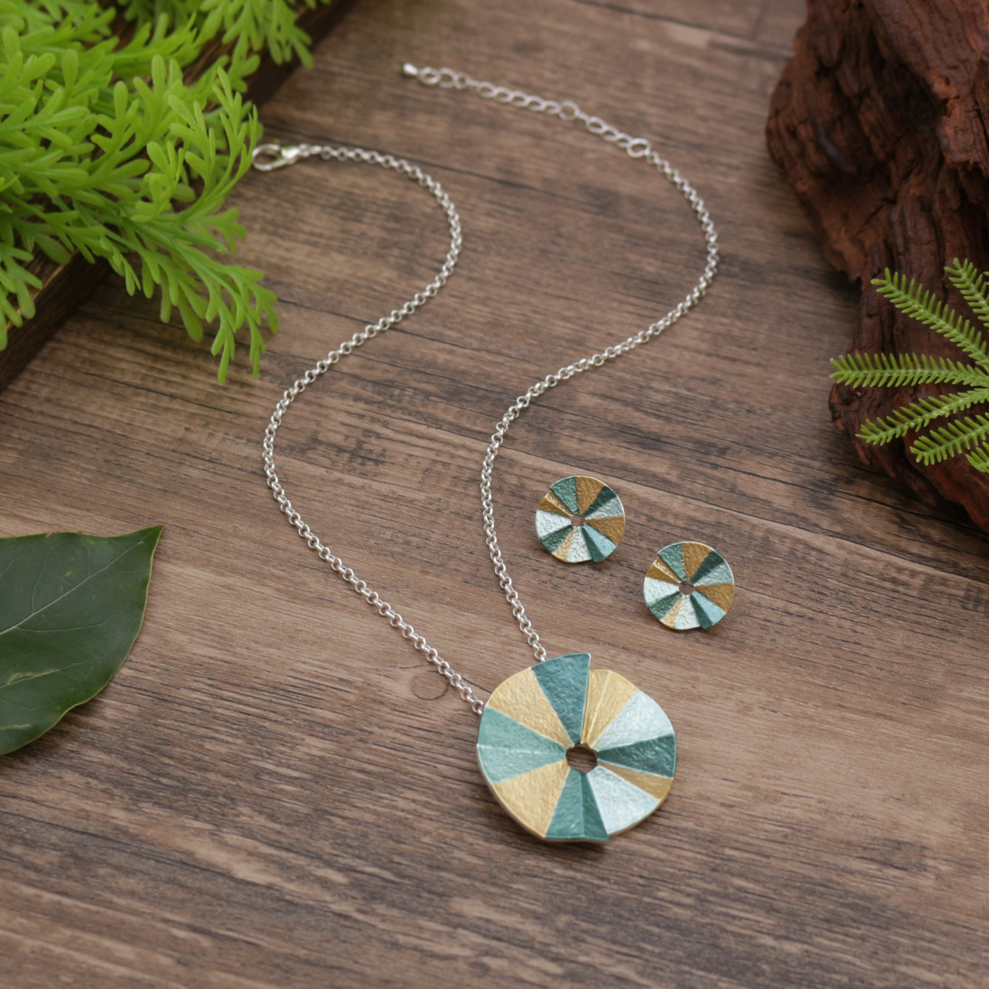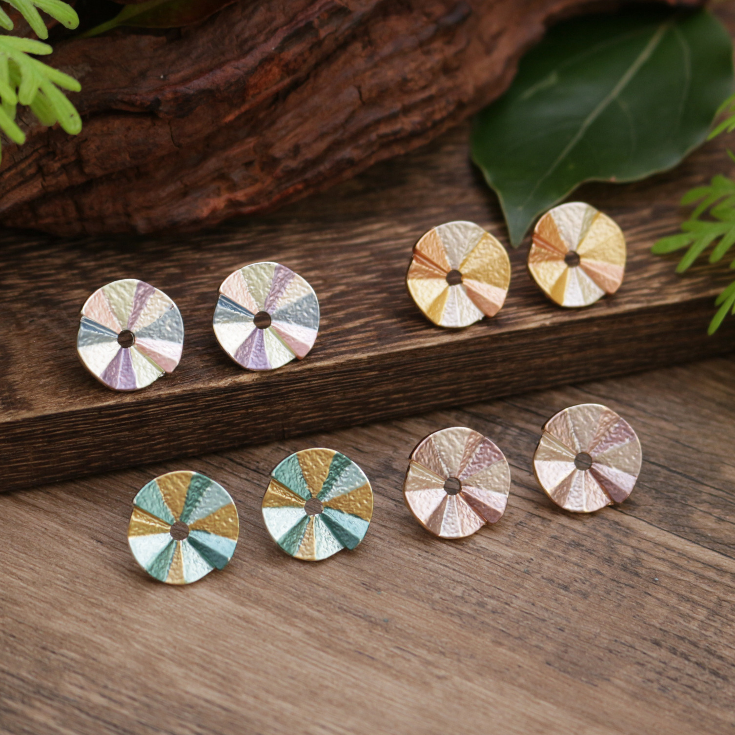 Color: green round geometric ear studs pendant suit-Silver, Orange round geometric ear studs pendant suit-gold, colorful round geometric ear studs pendant suit-Silver, Brown round geometric ear studs pendant suit-Gold