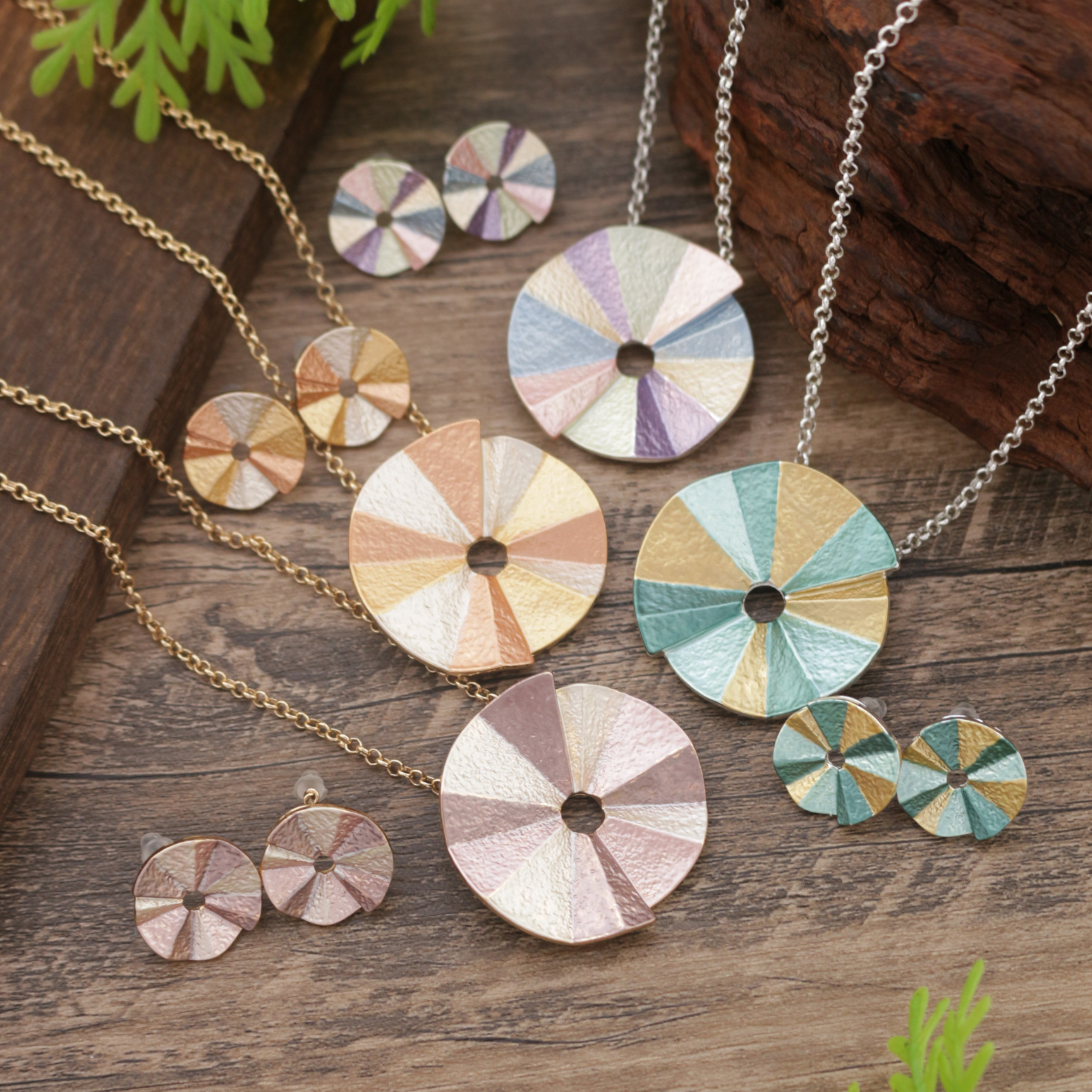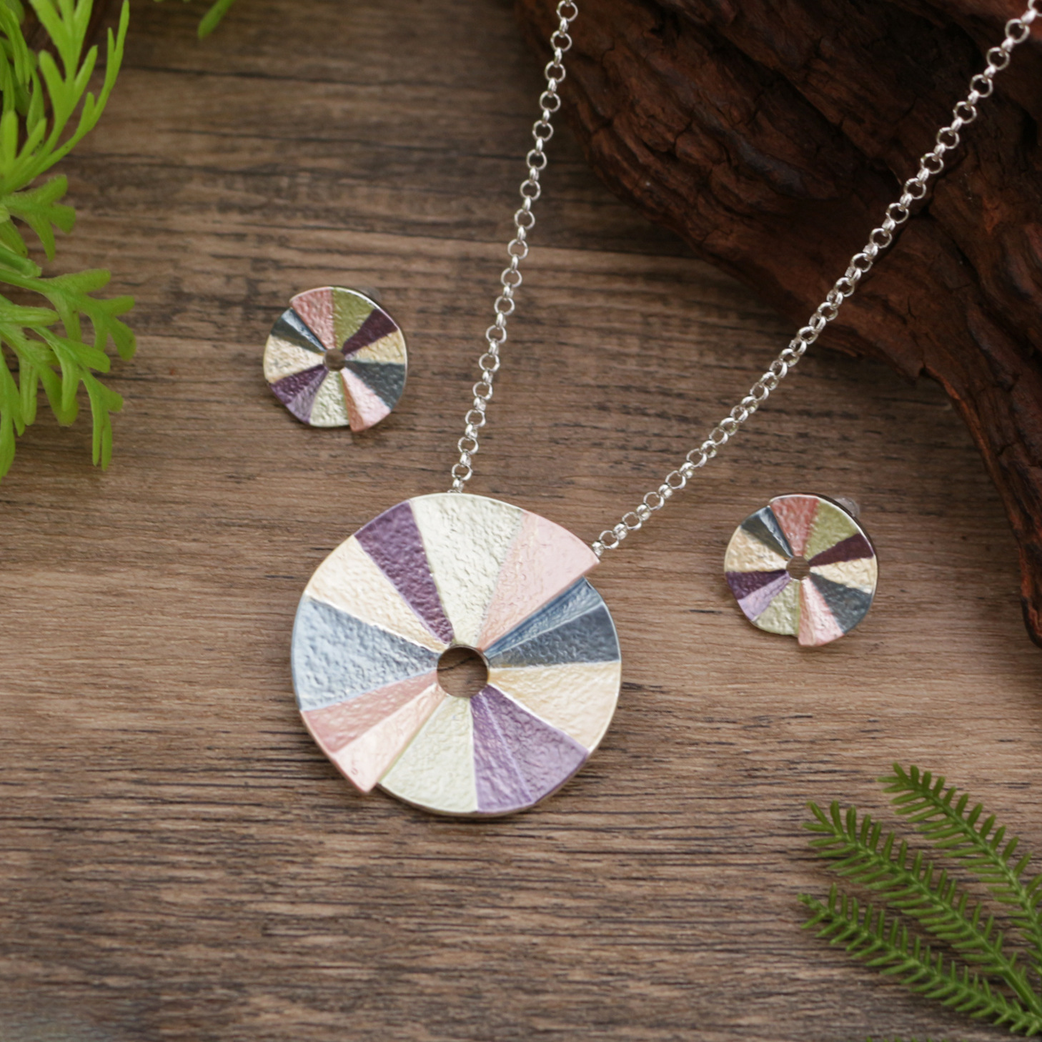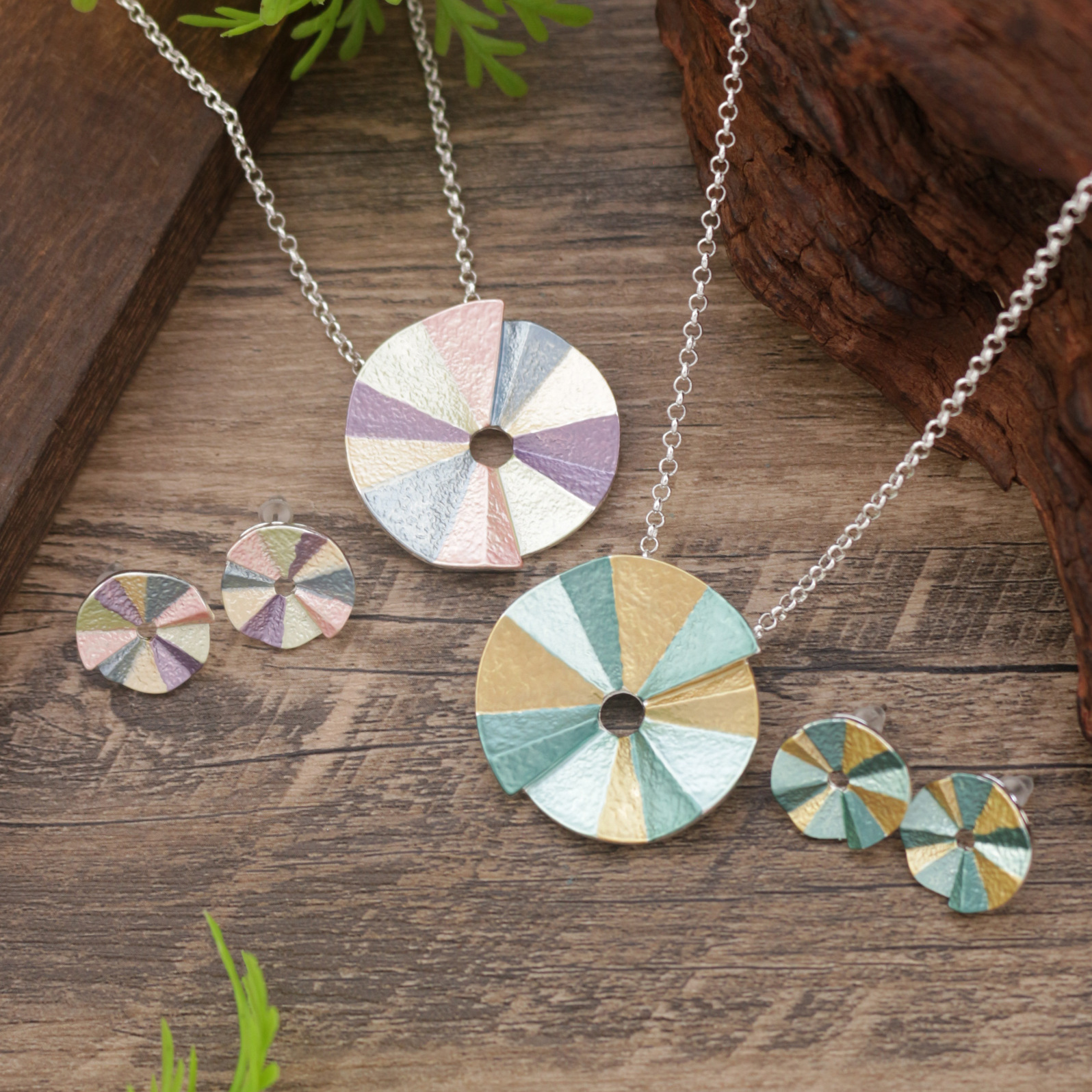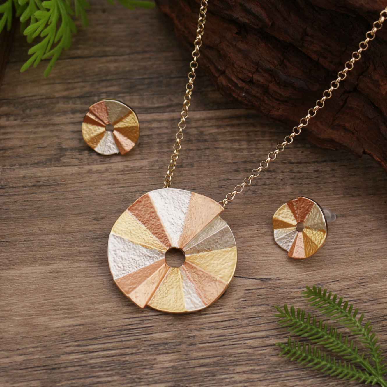 Color: green round geometric ear studs pendant suit-Silver, Orange round geometric ear studs pendant suit-gold, colorful round geometric ear studs pendant suit-Silver, Brown round geometric ear studs pendant suit-Gold