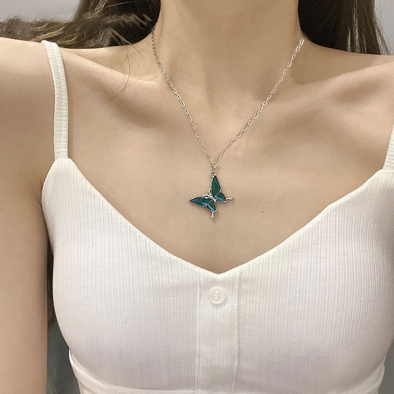 Color: temperature sensitive color changing butterfly-cross chain, temperature sensitive color changing butterfly-single pendant