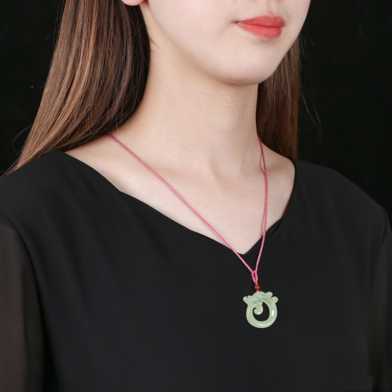 Xinjiang Hetian Jade Greenish White Jade Pendant Twelve Zodiac Dragon Necklace